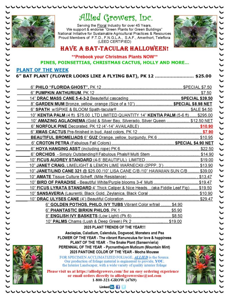 PLANT OF THE WEEK – 6″ BAT PLANT