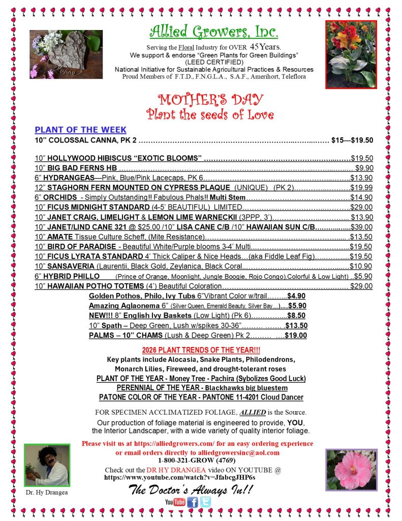 WE SUPPORT & ENDORSE: “Green Plants for Green Buildings,” “Interiorplantscape Network,” & “American Hort.”